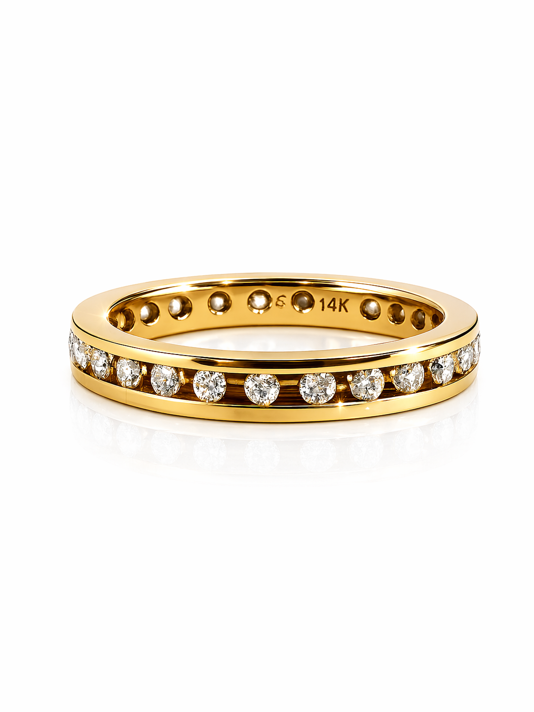 Designed for those who appreciate understated luxury, the sleek silhouette and balanced spacing offer a contemporary twist on a timeless classic. The polished yellow gold frame provides a warm contrast, elevating the sparkle of each diamond while ensuring lasting durability and comfort for everyday wear.