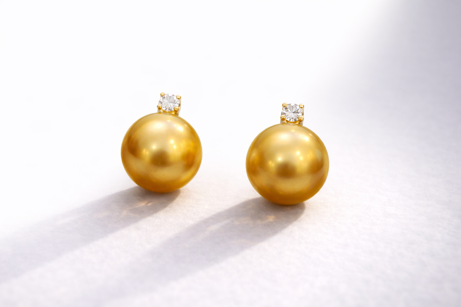 Radiant and refined, the Aurelia South Sea Pearl Diamond Studs celebrate timeless luxury in its purest form. Each earring features a lustrous golden South Sea pearl, prized for its natural warmth and exceptional glow, elegantly crowned with a brilliant diamond accent. Set in rich yellow gold, the design is effortlessly sophisticated—perfect for elevating everyday style while remaining exquisite enough for evening elegance. A modern heirloom, these earrings embody understated glamour and enduring beauty.