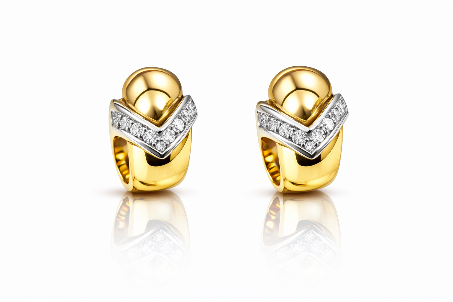 Designed to feel effortless yet striking, these earrings transition seamlessly from day to evening—minimal in form, powerful in presence. The polished gold embraces the diamonds in a clean, architectural design that speaks to contemporary luxury while remaining forever classic.