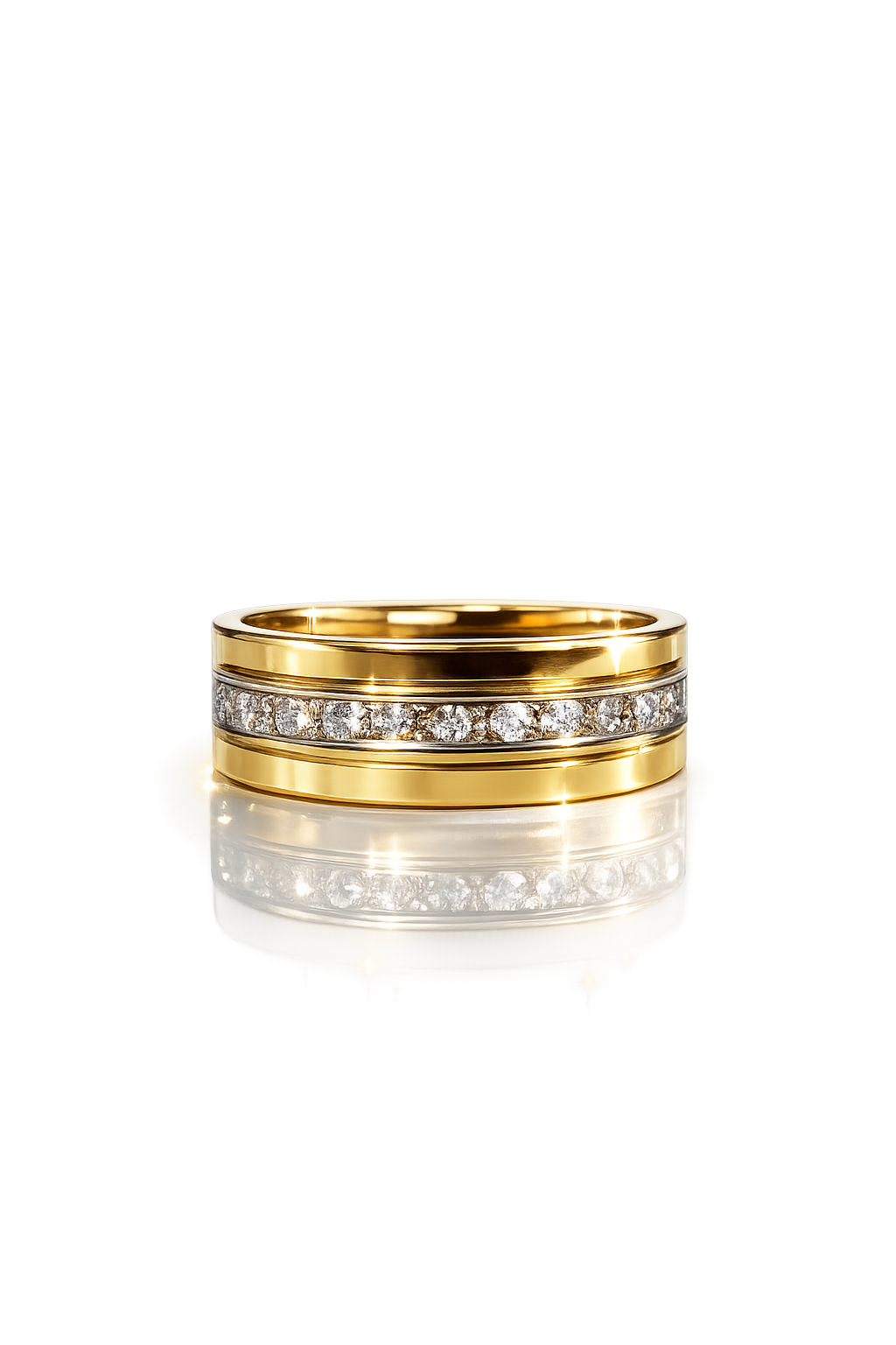 18kt Yellow Gold Men’s Diamond Wedding Band – Two-Tone Channel Set Design