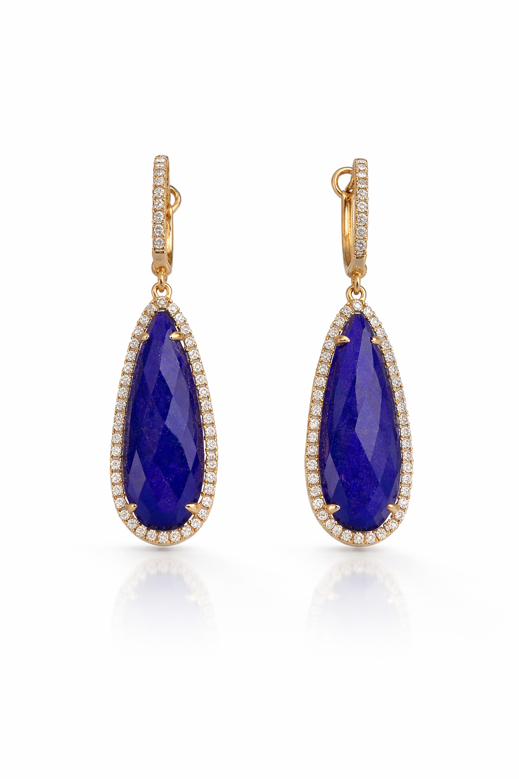 Perfect for evening wear, special occasions, or elevating a tailored daytime look, these lapis diamond drop earrings embody classic luxury with a bold, modern edge—an essential statement piece for any fine jewelry collection.