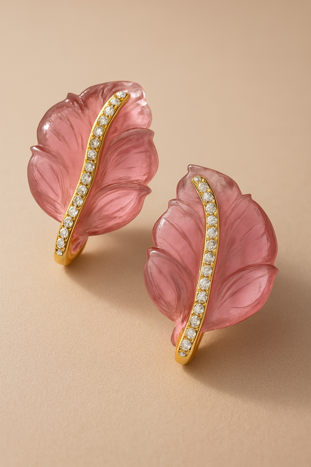 Graceful as a whisper of spring, the Blush Jardin Earrings capture the poetry of nature in motion. Each earring features a hand-carved pink tourmaline leaf, its delicate curves alive with translucent color and fine craftsmanship. A sinuous line of brilliant round diamonds, set in warm 18kt yellow gold, dances along the leaf’s vein—adding a shimmer of light with every movement. Feminine, sculptural, and timeless, these earrings embody a harmony of natural beauty and refined elegance—an ode to the garden of luxury.