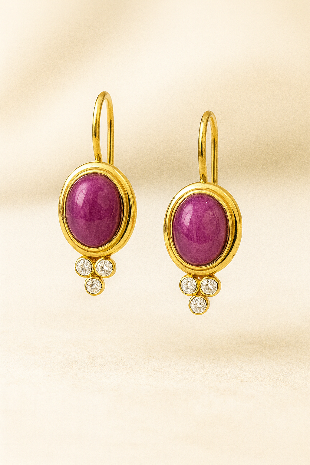 18kt yellow gold cabochon pink diamond dangle earrings
