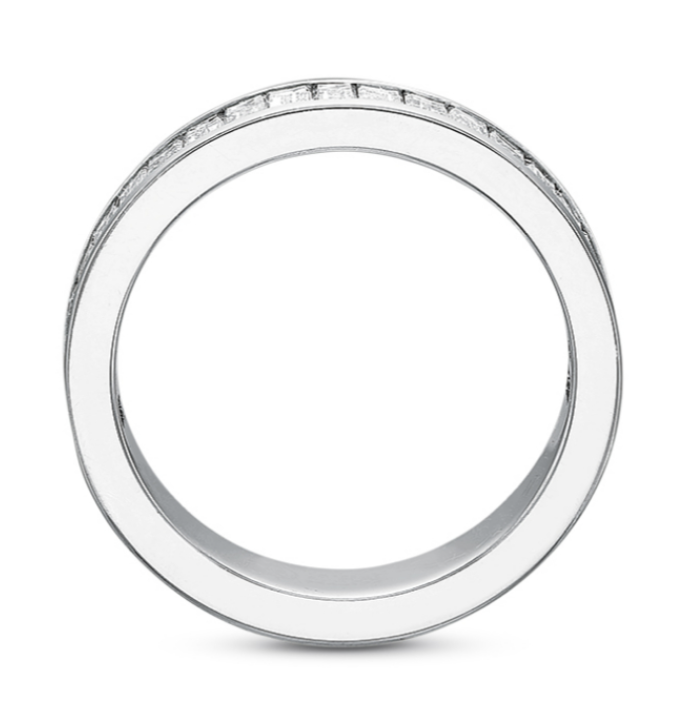 Crafted for those who appreciate understated brilliance, the channel setting offers a smooth, seamless profile—ideal for everyday elegance while maintaining exceptional sparkle. Whether worn as a statement wedding band, anniversary ring, or a powerful stand-alone piece, this diamond band delivers timeless style with contemporary refinement.
