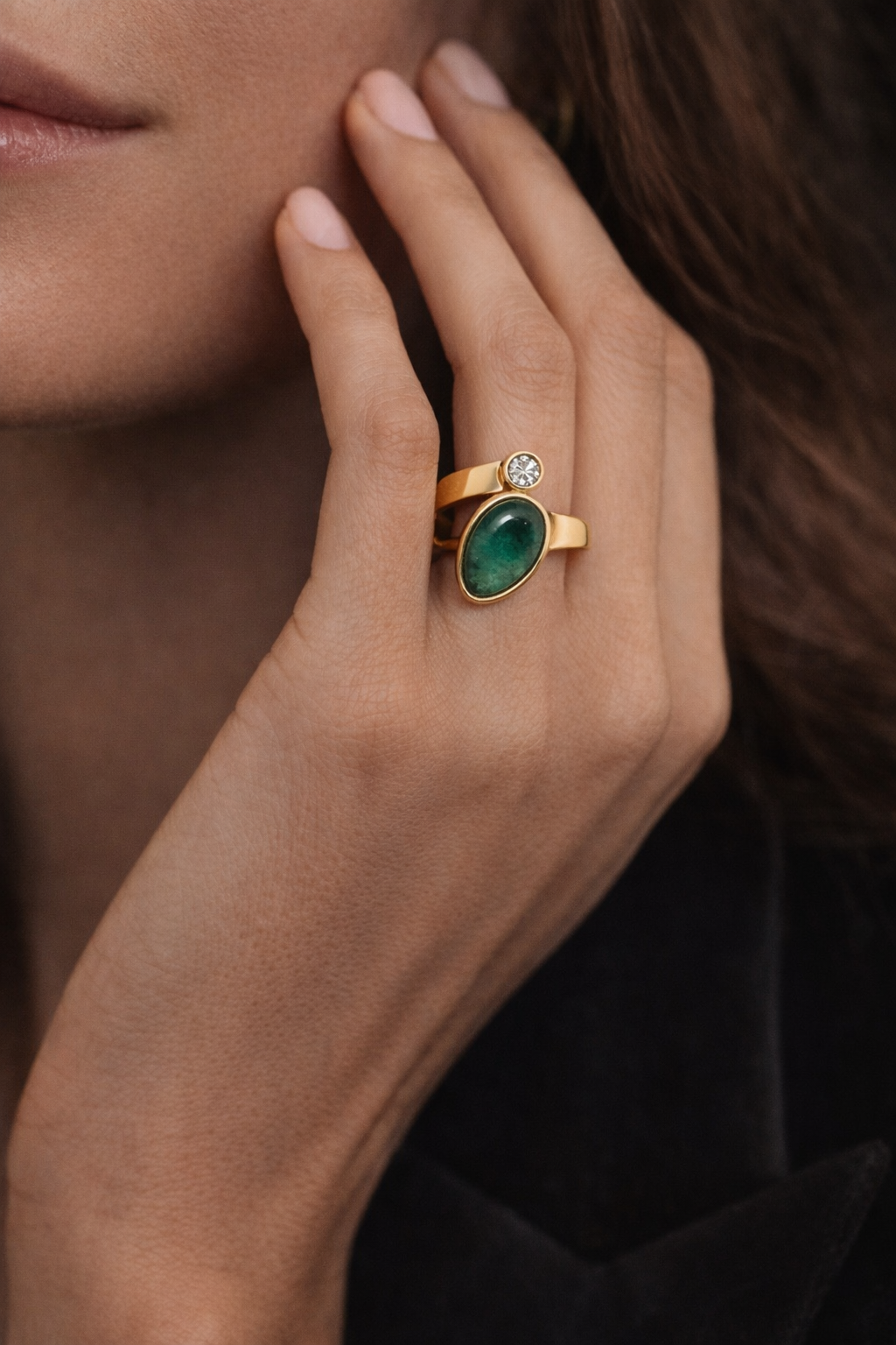 Its fluid open-band silhouette gives the piece a contemporary, high-jewelry feel, while the vibrant green emerald brings depth, elegance, and timeless allure. The result is a ring that feels both powerful and effortlessly sophisticated — designed for the woman who wants jewelry that stands apart.