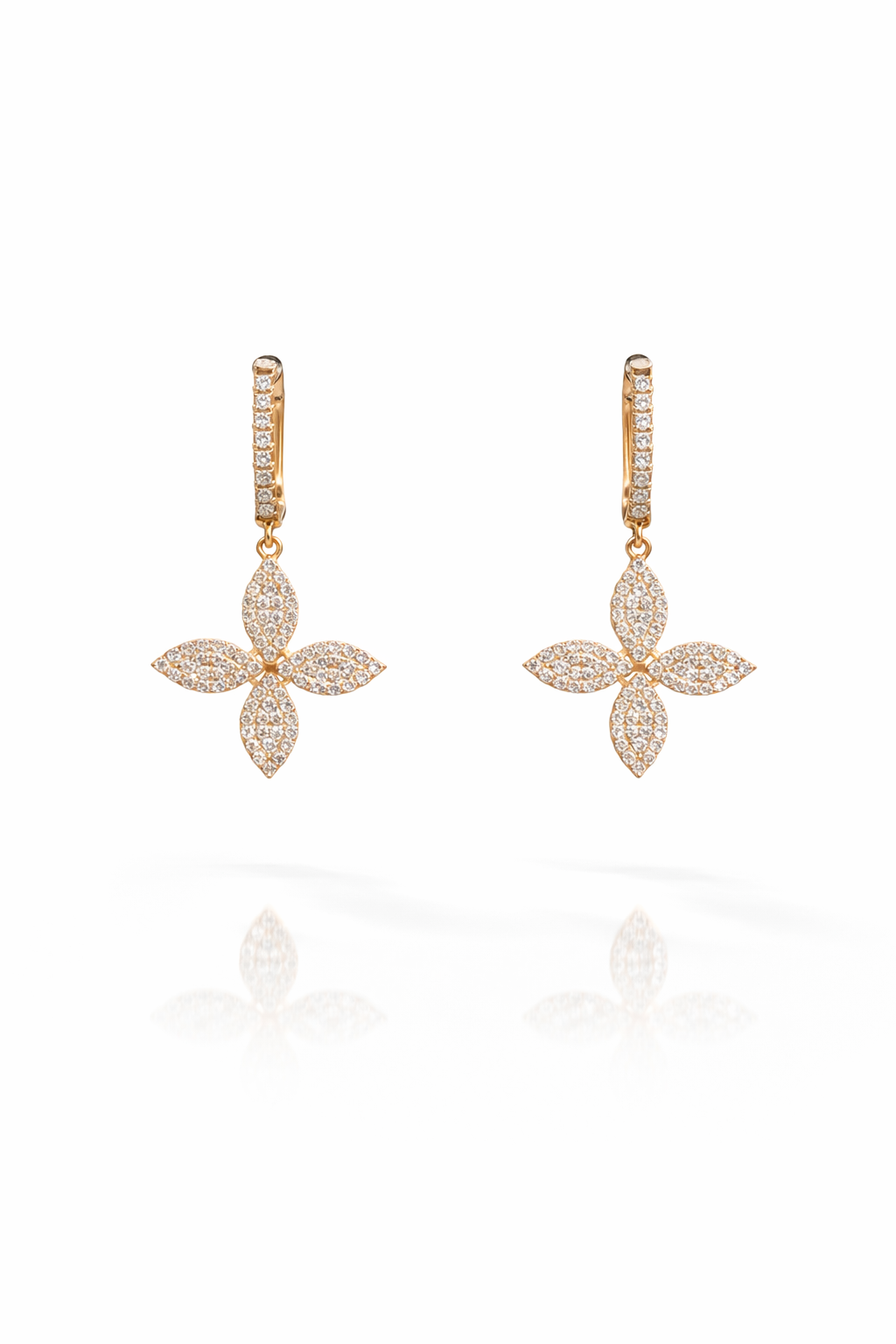 Perfect for both day and evening, these floral diamond dangle earrings balance femininity and luxury—ideal for weddings, special occasions, or elevating everyday style. A luminous addition to any fine jewelry collection, they embody classic beauty with contemporary charm.