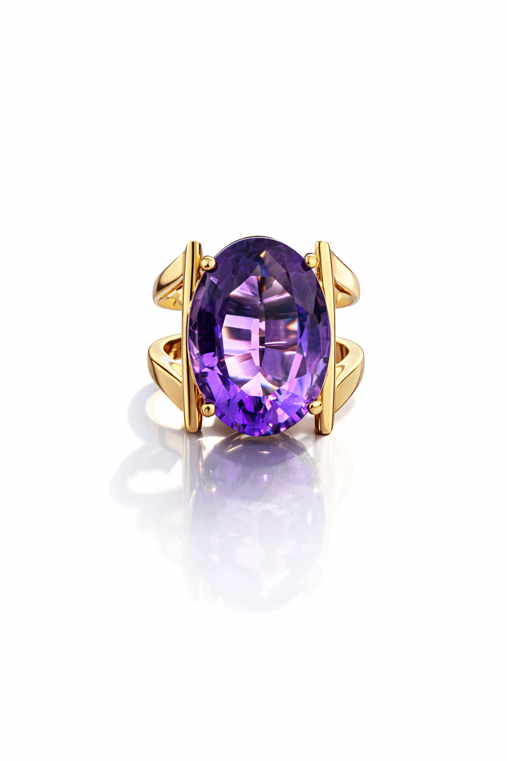 Bold, luminous, and unmistakably refined, the Imperial Violette Ring is a celebration of colour and craftsmanship. Showcasing a striking large oval-cut amethyst, this ring radiates rich violet tones with exceptional depth and brilliance. The gemstone is elegantly framed by a sculptural yellow-gold setting, designed to elevate the stone while allowing light to dance through every facet.