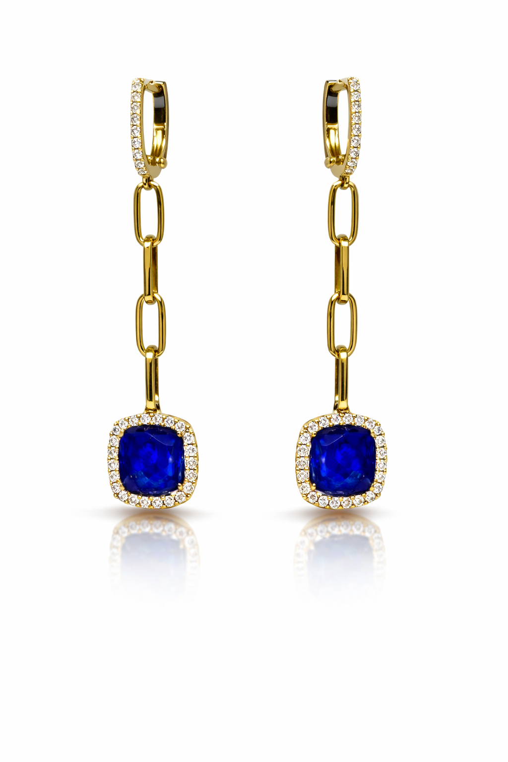 The contrast of twilight-blue sapphires against the radiant glow of gold and diamond creates a poetic balance—sophisticated, modern, and effortlessly luxurious. Perfect for evening glamour or elevating everyday refinement, these earrings exude an understated allure that never fades.