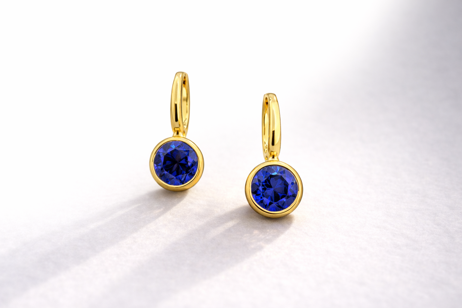 Inspired by the goddess of the moon and night, The Selene Drops embody quiet power and timeless elegance. Set in warm, polished yellow gold, each earring cradles a mesmerizing deep-blue sapphire — round-cut to reflect a galaxy of brilliance with every turn. Understated yet unforgettable, these earrings are the perfect blend of modern minimalism and regal allure.